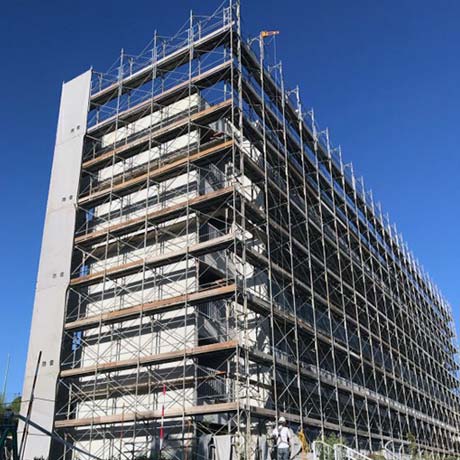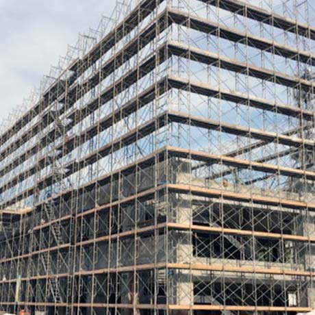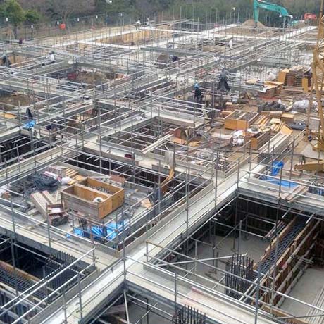 「安全・安心」はもとより、社員一人ひとりの技術の向上により、様々な現場条件、施工方法に幅広い対応が可能となり、工期を順守できる足場の設置を行っております。